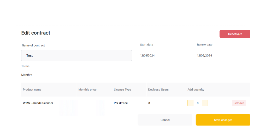 Possibility to Edit contract detail, Deactivated or Delete it from the list. Delete is possible only for deactivated contracts