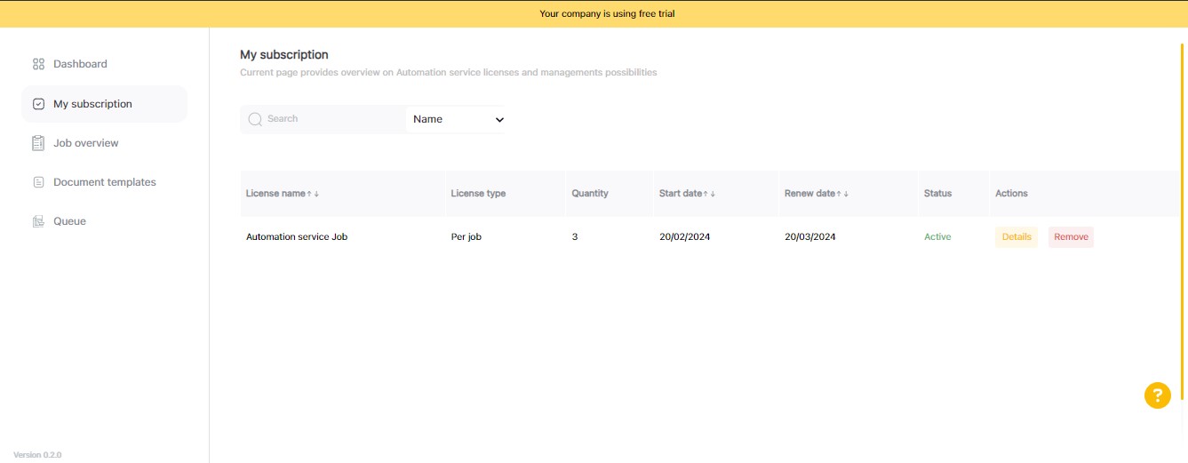 This subscription will be shown in the Automation service and user will be able to create maximum 3 jobs by using one or multiple Data Gateways