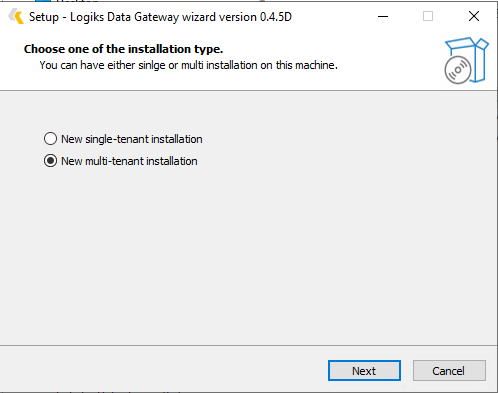 When registering the Gateway, a new field has been added to indicate whether the installation is multi-tenant or single-tenant: