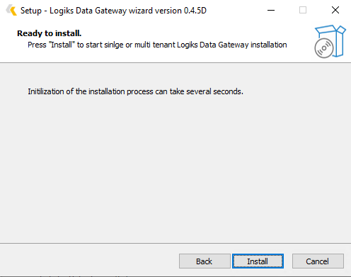 Press “Install“ and wait for several seconds as proper Gateway installation window will appear :