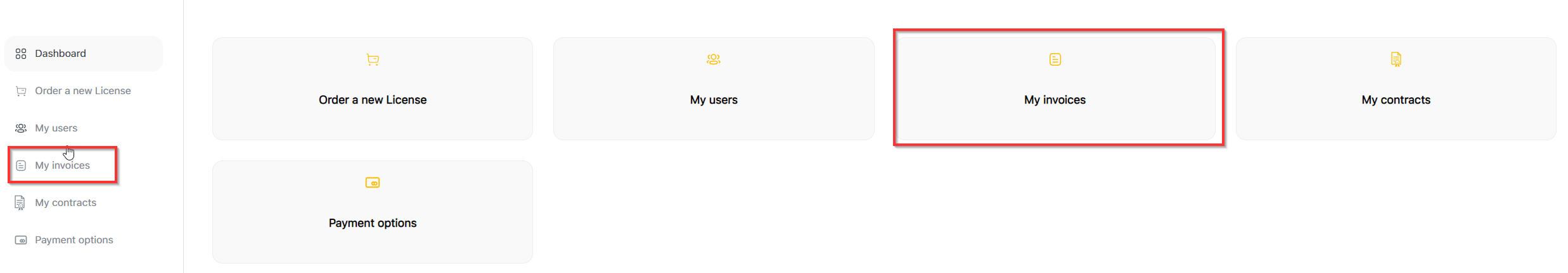 To manage, view, and download these invoices, navigate to the Admin Panel's "My Invoices" section.